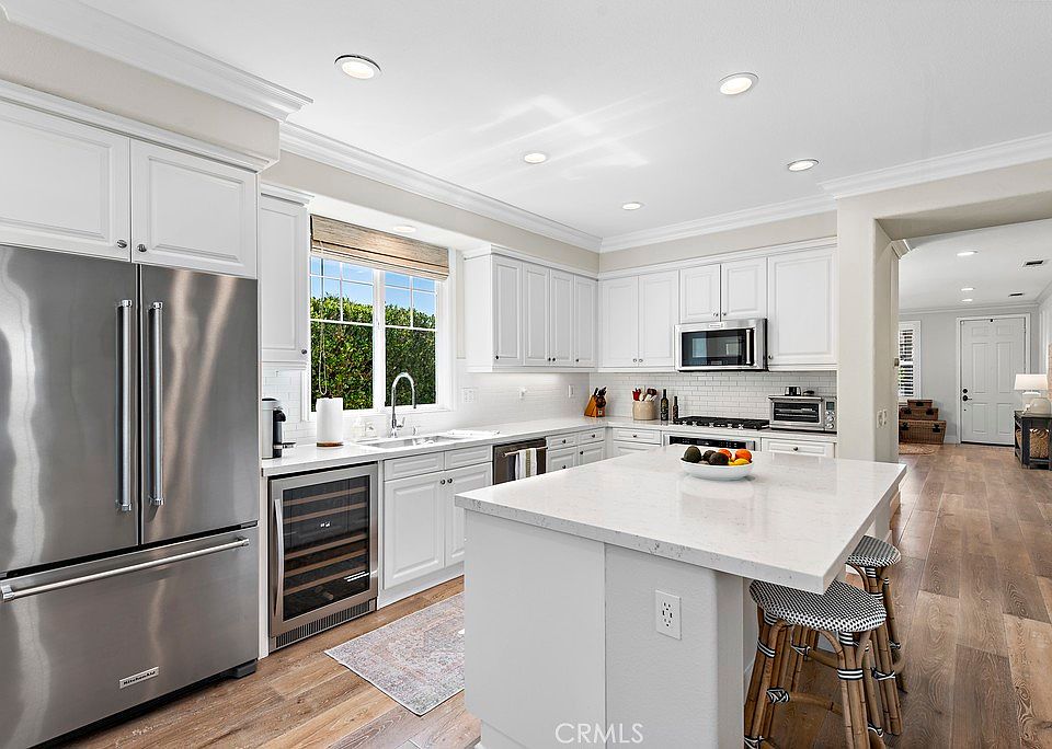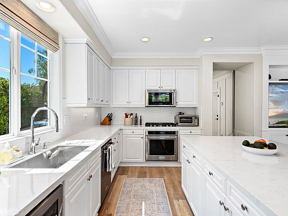 Welcome to 8 Elliston Drive! This beautiful, remodeled, and updated home features a light and bright open floorplan with stylish shiplap accents, plantation shutters, crown molding, fresh paint inside and out and more. The large and handsomely manicured back yard offers privacy, a lush setting, outdoor seating and built-in BBQ. Enjoy the spacious great room with fireplace and entertainment center. The remodeled kitchen offers a sizeable island, white cabinetry, stainless steel KitchenAid appliances, quartz countertops, full tile backsplash, upgraded plumbing fixtures, a suitable pantry and wine refrigerator. Nothing was spared in the updated bathrooms featuring quartz countertops and new tile flooring. The primary suite is enhanced with built-ins, walk-in closet, and a soaking tub. The three secondary bedrooms are ample, one with a timeless Juliet balcony. The new and efficient HVAC system with Nest thermostats is great for energy savings, not to mention LED lighting, new water heater, completely re-piped, a water softener, new sprinkler system. Laundry room is suitably located on the upper level. The abundant recreational amenities Ladera Ranch offers are amazing, including parks, water park, clubhouses, pools, spas, and more . plus excellent schools like Oso Grande Elementary . all conveniently located near this wonderful home to call your own!