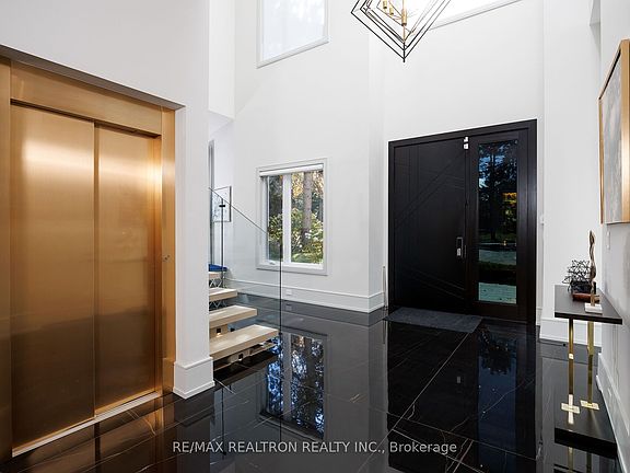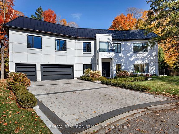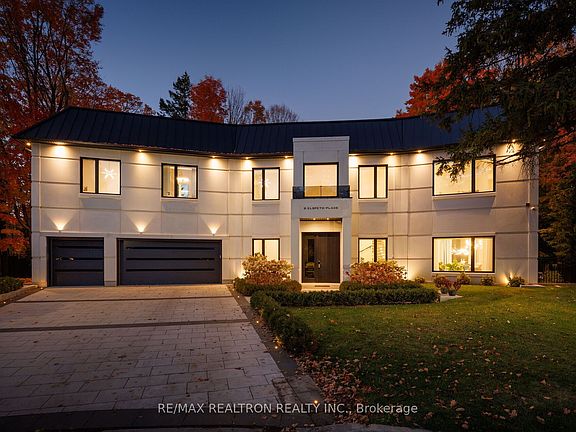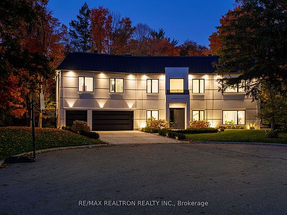 Introducing 8 Elspeth Place, a newly constructed *RAVINE LOT* luxury estate nestled on the prestigious Grandview enclave of Markham. Situated at the end of a tranquil cul-de-sac and backing onto a serene ravine, this architectural masterpiece offers over 8,200 sq ft of meticulously designed living space on a 0.5-acre lot. The exterior showcases elegant pre-cast concrete construction, blending timeless sophistication with durability. The main floor boasts12-foot ceilings adorned with exquisite chandeliers, while a grand 24-foot raised ceiling enhances the home's opulence. Designed for seamless modern living, the entire home features fully integrated smart technology, including Control4 automation for lighting, security, climate control, audio, and more accessible from your phone or built-in touchscreens throughout the house. The chef's kitchen is equipped with top-of-the-line Wolf and Sub-Zero appliances, complemented by a separate dirty kitchen for effortless entertaining. The residence features four spacious bedrooms upstairs, each with its own ensuite bathroom showcasing premium finishes and fixtures. An additional two bedrooms in the basement, one with an ensuite, provide ample space for family and guests. Additional highlights include a main floor office, a three-car garage with a car lift for luxury vehicles, and a three-lane heated driveway accommodating up to 12 cars. The basement is an entertainer's paradise, featuring a state-of-the-art gym, sauna, steam shower, home theater with surround sound and custom leather recliners, a recreation room, and a bar with a walk up to the ravine. This exceptional property combines unparalleled craftsmanship with cutting-edge smart home amenities, offering a lifestyle of sophistication, comfort, and tranquility.