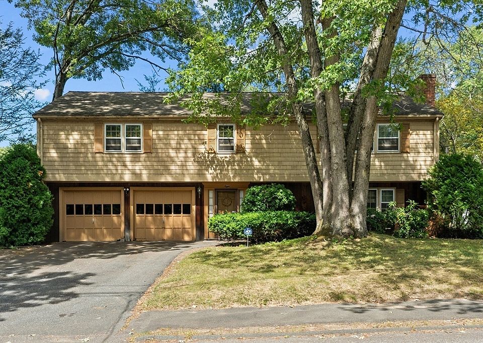 Large 4 bedroom, 2.5 bath Raised Ranch w/2 car attached garage in wonderful location! Main level has open floor plan & lovely Hardwood Floors throughout! Huge living room opens to formal dining room w/slider to deck! Eat in kitchen w/door to deck! Four large bedrooms, and primary with full bath and walk-in closet! Lower level has fireplaced family room with picture window! Huge laundry room/half bathroom w/double closets! Huge storage room/utility room leads to patio and private backyard! Oversized 2 car garage enters into large foyer with double closet! Fantastic side street location! Walk to everything—all schools, shops, restaurants, YMCA and just minutes to MA Pike and all major routes!