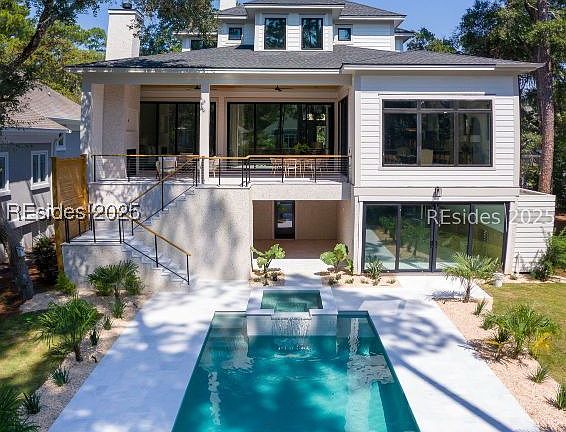 A rare opportunity to own a brand-new construction home in Hilton Head's premier private community. This remarkable residence combines modern design, thoughtful functionality, and elevated Lowcountry living. The main level features a stunning chef's kitchen with an open-concept dining and living space that flows into a spacious outdoor living area with a raised deck and an electric fireplace that overlooks the backyard, pool, and spa - perfect for year-round outdoor living. The primary suite, with a spa-inspired bath, features dual walk-in closets, a large wet room shower, and gorgeous floor-to-ceiling tile work. The main level home office provides a quiet workspace. Upstairs, find four ensuite bedrooms, each designed for comfort and privacy, while an elevator provides seamless access to all three levels. The lower level features a mudroom, a flexible recreation or fitness room, lanai, abundant storage, direct access to the pool and backyard, plus two garages with room for four cars. As a Wexford resident, you'll enjoy unmatched amenities: a private marina, championship golf, tennis, pickleball, croquet, community firepit, clubhouse dining, and a resort-style pool complex. Even more exciting, Wexford is set to unveil a newly expanded Clubhouse and a brand-new Harbour Center in April 2026, further enhancing the community's vibrant lifestyle.8 Fairfax Lane is more than a new home - it's your chance to embrace modern luxury in one of Hilton Head Island's most distinguished private communities.