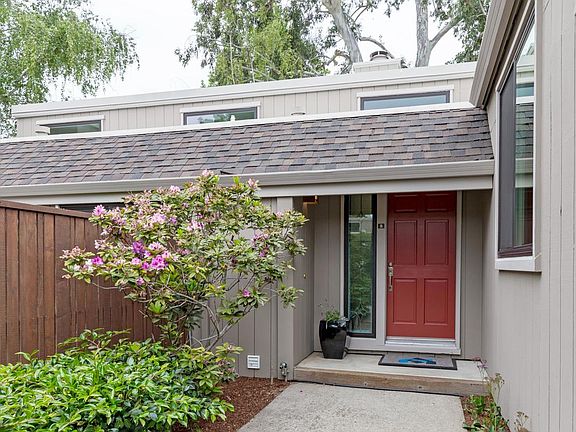 Beautifully remodeled townhome in idyllic setting. Located in the desirable 16-acre Toyon Farm complex - a private Los Altos enclave. Spacious and carpeted living room with two wide windows, parade of clerestory windows beneath a vaulted ceiling, gas-log fireplace and built-in media and display cabinetry. Formal dining area with sliding glass doors to the rear patio. Remodeled chefs kitchen with abundant natural wood cabinetry, polished quartz countertops and hardwood flooring. Casual dining area with built-in wine rack and cooks bookshelf. Carpeted master suite with wide customized closet, full wall of sliding glass doors leading out to a private and peaceful paver stone terrace, and spa-like master bath. Three fenced patios afford privacy, offering colorful perimeter landscaping and mature trees. Detached 2-car garage. Great location walking distance to Lucky supermarket and Trader Joes. Just minutes to shopping and dining at Rancho Shopping Center and downtown Los Altos.
