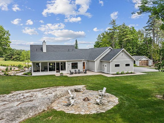 Immerse yourself in the peaceful serenity of this custom modern farmhouse nestled into almost four acres in Pownal. Perched atop a hill, the house offers stunning views of the quiet rural countryside. Built in 2020, this home seamlessly blends the traditional charm of a Maine farm-town with modern, high-end amenities and materials. The chef's kitchen is a standout, exuding both elegance and warmth. The spacious eat-in island boasts a 5' Galley Workstation sink with a convenient Galley tap for instant, filtered hot water. Integrated into the rift cut oak cabinets are a 30' Sub Zero refrigerator column, freezer drawers, and a Cove dishwasher. For culinary enthusiasts, choose between the Wolf Dual Range or the Wall Convection Steam Oven to create delicious meals at home. Thoughtful design ensures efficient use of space throughout the home. Upon entering, you are welcomed into a foyer leading to the main living spaces. Firstly, an informal living room with a cozy gas fireplace open to kitchen and dining. Beyond the kitchen, a butler's pantry leads to a hidden laundry room and a sunlit study adorned with built- in bookshelves. The primary suite features a galley-style walk-in closet with built-ins and a private bathroom with luxurious touches like a heated towel bar and a custom tile shower. Room for everyone with two additional bedrooms and extra space on the first level and a bonus family room in the finished basement. Sliding glass doors from the living and dining areas open up to the back porch, overlooking the private, landscaped backyard with a fire pit. The perfect setting to enjoy the morning chorus of birds or witness the sunset peeking through the trees and rolling down the hillside. Also includes an attached 3-car garage with finish-able space above, an oversized woodshed and workshop area in the unfinished portion of the dry basement. An easy 10-minute commute to Freeport or 30 minutes to Portland.