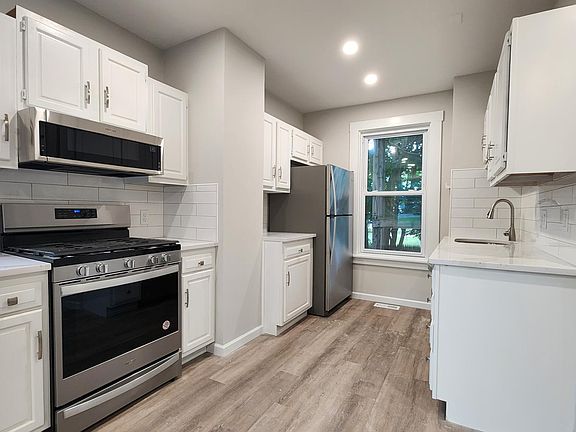 AVAILABLE NOW Spectacular one bedroom plus walkthrough office on the first floor of a two family home. Brand new eat-in kitchen features recessed lighting, stainless steel appliances, quartz countertops, built-in microwave, and gas range. Refinished hardwood floors throughout the living room, bedroom and office. Freshly painted throughout. Free shared laundry in the basement. Off-street parking for two cars, one garage space. Shared use of the backyard. Nearby shops and restaurants. Tenant pays gas and electricity. First month plus security deposit required