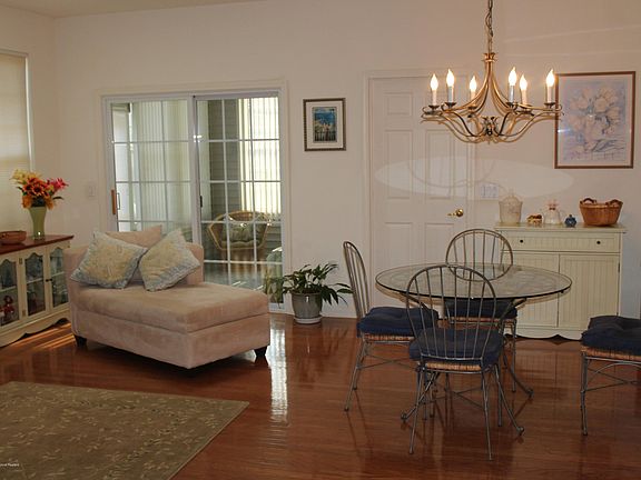 This extended Auburn model brings the sqft of this home to 1762 sqft. and the the already large master bedroom and family room. This update home features open area with the family room w/ custom mantle and marble hearth fire place . The kitchen offers ceramic tile, beautiful 42'' white cabinetry, pantry, breakfast nook and a formal dining area. Home has 2 bedroom with master offering a full bathroom , walk in closet and extra room for sitting or tv room. Off the family room is a included enclosed porch which leads to the yard area with a walking path. The home has hardwood floors thru -out ,laundry room which lead to the garage and so much more. Come make this your new home!