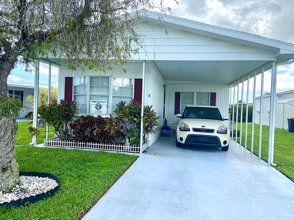 Welcome to 8 Florencia Lane in Port Saint Lucie Fl. This 2 bed/2 bath home is located in a great 55+ community on leased land 833.06 a month, with some great amenities, lawn care, trash and recycle, clubhouse activities galore and use of the boat launch in the community, not to mention tennis, golf, and an array of events! Offered partially furnished AS_IS AS SHOWN with a lovely master suite, a den area, and indoor laundry. This split layout offers privacy for you and guests with a separate bath/tub combination. Central air replaced 2022, shingled roof 2013, circuit breaker and ceiling fan and fixtures newer and washer replaced 2022. Carpet should be the concern for replacement as the current owner opts to allow the new owner to decide. Call ME today and make this your home sweet home!