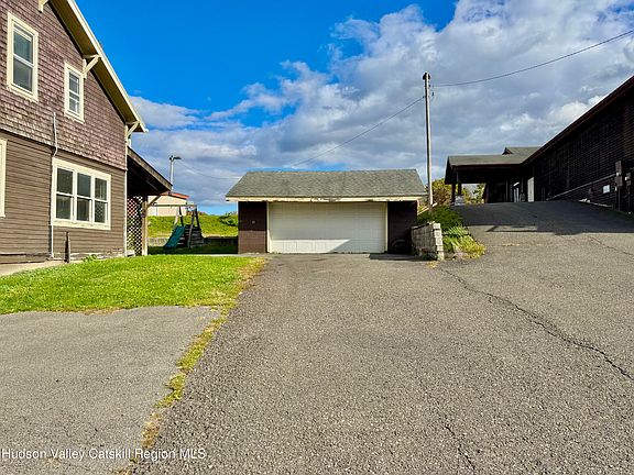 Classic 1929 Arts & Crafts Home with Mountain Views! Full of character and potential, this charming cedar shake home offers 2,142 sq. ft. with 4 bedrooms and 2 full baths. Enjoy beautiful hardwood floors, a spacious full front porch with scenic mountain views, and sliding glass doors leading to a concrete patio in the rear. The property also features a 2-car detached garage with a wood-burning stove in the basement connected to the oil hot water radiator heating system. With a little TLC, this home can truly shine! Conveniently located just 10 minutes from the vibrant town of Hudson and 30 minutes from Windham and Hunter Ski Resorts. Great Catskill location close to shops, dining, and all local amenities.