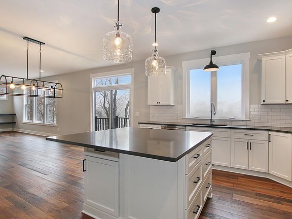 It is located in Fox Point Court, a cul-de-sac connected to The Orchards. Forest Hills Northern School District. The home boasts a lovely foyer with a handcrafted stairway. To the left is a flex room with it's own full bath. This room can be used as a main floor master bedroom/in-law suite or home office. The living room has a stone faced gas fireplace with custom built-ins on each side and large windows overlooking the water. The large custom kitchen and dining area have hardwood floors, quartzcountertops, stainless steel appliances and a large walk-in pantry. Right off the dining area is a treated wood deck. A large mudroom includes a custom built-in bench with 5 lockers and is adjacent to the main floor laundry room, all located right of the garage. Master bedroom is highlighted by a tray ceiling and the bath has a large soaking tub.