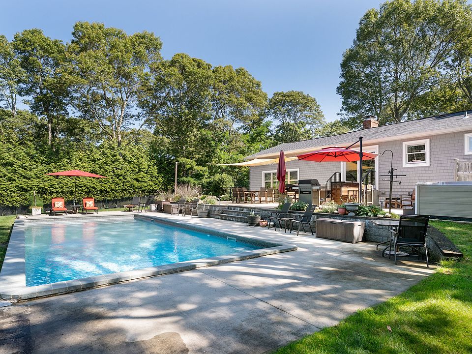 Discover the perfect blend of potential and coastal living in this three bedroom two bath ranch ideally located just a few minutes from the beach. Located in the coveted Tiana Shores neighborhood of Hampton Bays. This optional home owner's association offers bay front beach access, pool and tennis. You will know you want to make this house your home when you notice all of the care taken of the home recently. It has a a new roof, new siding and windows, new AC and many other upgrades. One of this best interior features of this home is the large family room with high ceilings and double sided fireplace. This is the perfect place to play a game, watch a move or just relax. Step outside to your private backyard oasis complete with multi level spacious patio, landscaping, a sparkling in ground pool and hot tub perfect for entertaining or enjoyment after a day by the ocean. Located on a shy half acre of property in the East Quogue/Westhampton school district.