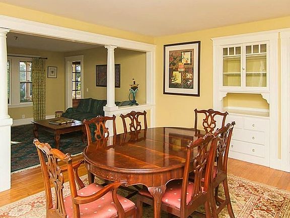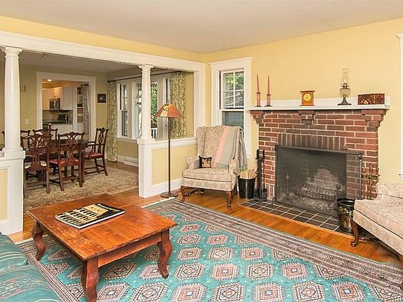 Country Club Neighborhood! Amazing 3 - 4 bdrm Craftsman style home with lovely period details, fireplace, built-ins, hardwood floors, updated bathrooms and expansive eat-in Kitchen. You'll love the stainless steel appliances, breakfast bar & morning room dining area with Anderson French Wood Sliders that open to the perfect outdoor living space and paver patio. The dining room and living room share a large open plan that includes rich molding details, columns, built-in cabinetry, and large leaded glass windows that make all the rooms magnificently sunny and bright. Your covered front porch is an inviting outdoor room to visit with friends, relax and enjoy the evening sunset. The Master Suite includes private bathroom & walk-in closet. Additional bedrooms have ample closet space, with one offering a beautiful alcove for study area, playroom or craft room! Conveniently located to the town center, parks, T Station, Brook Path & more