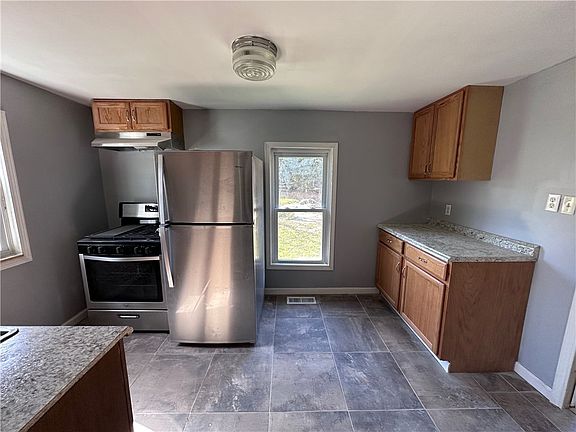 Welcome home to your very own semi private oasis! This home features 2 parcels adding just over 1/2 and acre of county like setting with a fire pit perfect for those summer fires! Outside you will find 2 outbuildings and small shed perfect for storage for areas for working! Inside you are welcomed into a small mud room leading into the kitchen with brand new tile, updated cabinets, new stainless appliances and plenty of light! Walking further into the home you will find updated bath with brand new shower and floor, 2 nice sized bedrooms and 1st floor laundry! Perfect 1 level living with basement for additional space ! Tin roof installed within the last 5 years too!