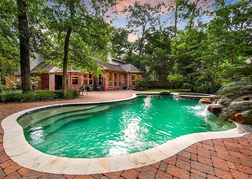 Gorgeous wooded oasis in the heart of The Woodlands Village if Indian Spring! 5 bedroom 4 .5 bath home on a quiet cul-de-sac .348 acre lot with charming curb appeal and beautiful wooded landscaping. Gorgeous park like backyard that is perfect for entertaining, enjoying a fire, gardening, or just relaxing poolside! The main floor features a spacious foyer, dedicated study, formal dining room, updated island kitchen, stainless appliances, family room with a fireplace, breakfast room, and 1st floor laundry room. True master suite with a spa-like bath, and walk in closet. Master overlooks the backyard paradise. The second level features a spacious game room, 4 guest rooms, 2 full baths, and a hidden bonus room. Bonus room includes reading nook. Perfect as a playroom, media room, or storage. New paint, new carpet, new fans, recent roof, annual terminex pest treatment. Awesome location! Nearby shops & dining, exemplary schools, parks, trails, John Cooper School, and more!