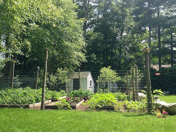 Don't let days on market fool you...very limited showing access. A tiny farm, with established gardens and fruit trees...Spacious AND in great neighborhood location! The HUGE oversized heated garage was built to please every tinkerer, with lots of electric and workshop space. It leads into a potential 'man-cave' first level in law space or media room. The raised garden beds in the backyard are organic, with established herb gardens, irrigation system,the 2 adorable shed structures accompany a chicken coop. Theres even a wood burning pizza oven off the patio and deck. 3+ Bedrooms(4th being used as office), 3 baths, fireplaced family room and high ceilings. Convenient to conservation area, rt 128, and Gordon College. this Georgian split level welcomes you through a formal columned, elegant brick entrance. Hardwood flooring, double ovens and subzero fridge in kitchen, with sliders to deck.Renovated around 2001 to add the huge garage and treehouse like master bedroom.