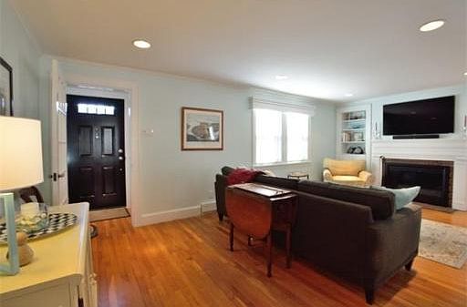 OH Apr. 6th 1-3 PERFECTION HAS AN ADDRESS. Just move right in; all the updates are done. Step into this charming cape and you will know you are home. Note the open SS kit./DR, LR with Firepl., Sunrm with travertine tile and new windows, well proportioned bedrms., updated baths, 2nd floor master bedrm with WIC and built ins, adjacent 3/4 tiled bath, and L-shaped bedroom currently used as office. Note the newer roof, newer 1.5 car det. gar.,gorgeous fenced backyard with newer patio, trex deck with built in Hot tub, perennials, new front walk and front door. The LL offers a family/media room plus an additional multipurpose room and a workshop. Great location close to highways, commuter rail,shopping and Town Ctr. Friendly nbhd with annual block party completes this picture perfect home.