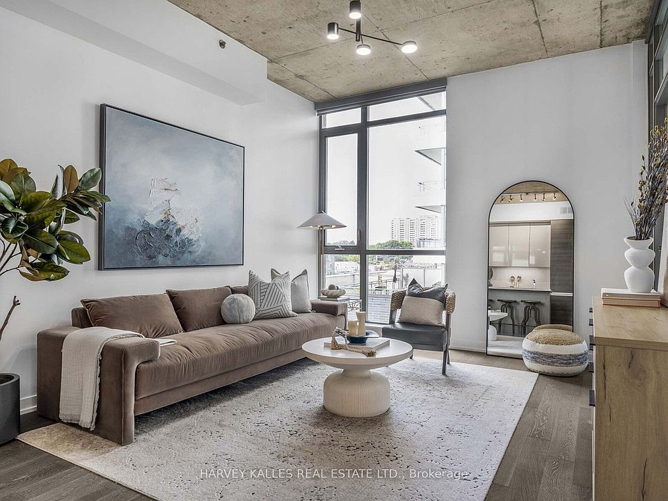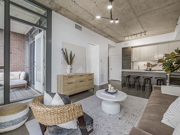 Boutique Living in the Heart of West Queen West. Welcome to Suite 615 at 8 Gladstone, a stunning one-bedroom residence offering 630 sq. ft. of impeccably designed living space. With soaring 10-foot exposed concrete ceilings and floor-to-ceiling windows, this open-concept suite is bathed in natural light and exudes sophisticated urban character straight from the pages of a design magazine. Every detail has been thoughtfully curated, including a brand-new custom kitchen island, a rare and sought after upgrade that maximizes both culinary functionality and entertaining space. Additional enhancements include designer light fixtures and custom closets, seamlessly blending form and function with elevated style. Step onto your private balcony to soak in the city's vibrant energy, or retreat indoors to a space that feels equally refined and inviting. At 8 Gladstone, modern conveniences extend beyond your suite. Enjoy amenities such as visitor parking, an elegant party room, and a dedicated dog wash station for your furry best friend, truly the perfect blend of boutique luxury and urban sophistication. Positioned in one of Toronto's most dynamic neighbourhoods, you're just steps from Trinity Bellwoods Park, Ossington, Liberty Village, Dundas West and Little Portugal. With cafes, restaurants, shops and grocery stores (Metro at your door, FreshCo across the street) plus the Queen Street streetcar at your doorstep, you are perfectly connected to everything the city has to offer.