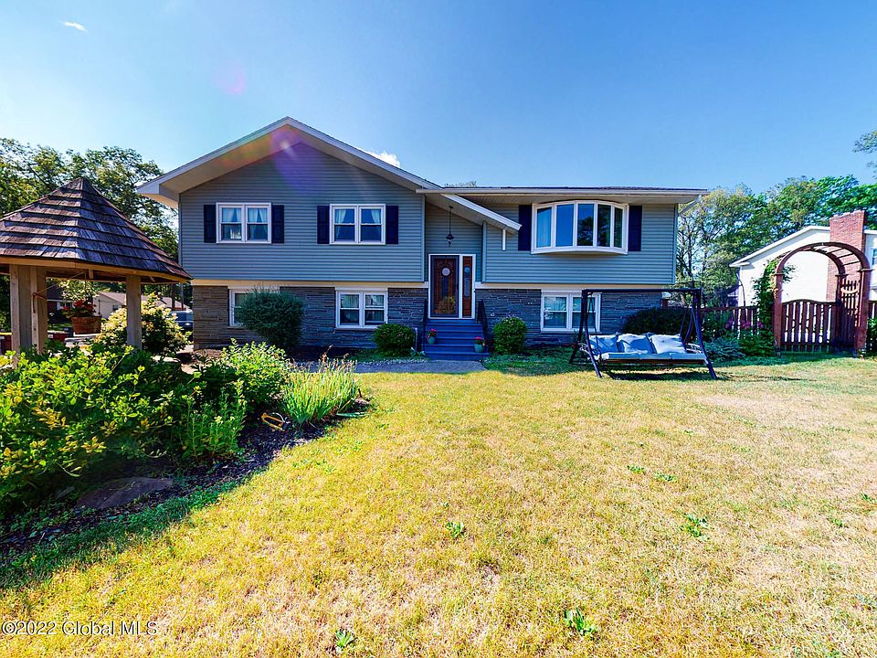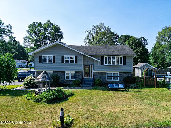 This does not come around often...Meticulously maintained executive size raised ranch with a SPARKLING INGROUND SWIMMING POOL (NEW LINER '19) and small pool house, HUGE 2 GAR GARAGE, 4 BEDROOMS-2 large master bedrooms, 2 FULL BTHRMS, all contemporary OPEN kitchen, updated family room with fireplace w/ insert & blower to heat the whole house++ in highly sought-after GLEN MARY MANOR on a cul-de-sac AND in desirable Schalmont School District!!! BETTER HURRY! WHOLE HOUSE PAINTED '22, NEW CENTRAL AC '21, NEW KITCHEN '21-Custom made Lg center island, Quartz counters, PORCELAIN tile flrs and backsplash, ss appliances, faucet), UPDATED FAMILY ROOM '19, All NEW BEAUTIFUL PORCELAIN FLOORING on ENTIRE LOWER LEVEL. New Hot Water Tank'19, only 5 yr old leach fields, and SO MUCH MORE!