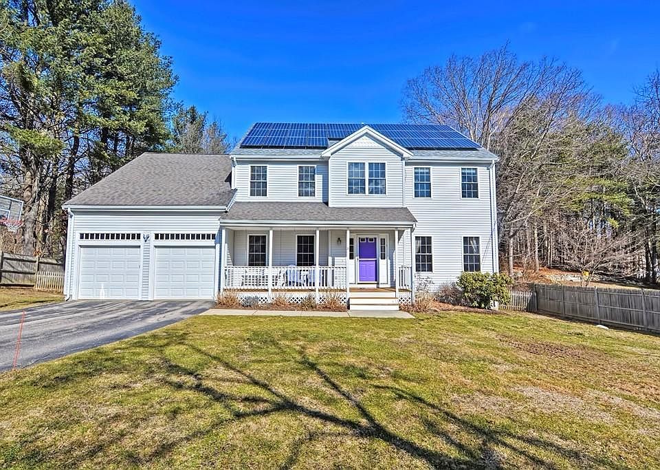 You will fall in love with this magnificent, NEWER 4-bedroom, 2.5 bath Colonial in a very desirable Center of Town Location. Close proximity to Sharon Town Center, Library, Restaurants, Commuter Rail Station and Houses of Worship. Enter through the two-story foyer into a bright and sunny open floor plan with high ceilings, gleaming hardwood floors, granite kitchen with newer appliances, 1st FLOOR OFFICE, and family room with cathedral ceiling, skylights and GAS fireplace. Second floor features 3 generous size bedrooms PLUS a large master bedroom suite, complete with full bath with Jacuzzi tub and amazing WALK IN CLOSET. Front farmer's porch with swing, back deck with wooded privacy, and fenced backyard. Large walk-out basement with high ceilings can easily be finished for additional living space. Maintenance-free SOLAR PANELS, installed in 2015, provide clean energy and will reduce, or eliminate, monthly electric bills. Elegance and family comfort abound in this move-in ready home.