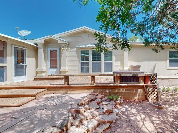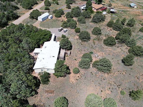 Welcome to the gorgeous East Mountains! Very spacious home on a total of 4.23 acres with great views and privacy! Well thought out floor plan with 2251 heated Sq Ft complete with two separate living areas, dining area, large bedrooms, fireplace and pellet stove, deck, a covered walkway and more! Several large storage/ workshops included, one 40 feet deep you could even park a car in! Quiet space with nice plants and trees to relax out front. Plenty of storage for all your goodies. Beautiful trees and an amazing view of the Sandias and more. All items in garage building convey with purchase. There is a total of three parcels included, the main parcel with the home is 3 acres. Seller offering a $2500 carpet/flooring allowance!