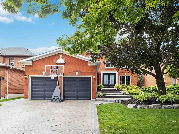 Executive 4+1 bedroom, 5 bath family home with finished basement & nestled on a premium 50x132 ft lot in Queens Common! Lifted from the pages of a magazine from the lush manicured gardens & stamped concrete entry that leads you through to the inviting foyer with soaring cathedral ceilings & palladium window. Upgraded throughout featuring extensive hardwood floors including staircase with wrought iron spindles, pot lighting, formal living room with french door entry, custom main floor plan with open concept dining room & great room with walk-out & beautiful wood-burning fireplace creating a warm and cozy atmosphere for family gatherings or quiet evenings. Gourmet kitchen boasting granite counters, breakfast bar, backsplash, wine fridge & stainless steel appliances including gas stove. Break fast area with 2nd walk-out to the backyard with gorgeous stamped concrete patio, gazebo, perennial gardens & mature trees for privacy. Convenient main level office & laundry room with separate side entry. Upstairs you will find 4 generous bedrooms, the primary retreat with walk-in closet & spa like 6pc ensuite with glass rainfall shower, double quartz vanity, bidet & relaxing stand alone soaker tub! Room to grow in the fully finished basement complete with 5th bedroom with 4pc ensuite, additional 2pc bath in the rec room, amazing theatre room & ample storage space. Situated steps to parks, transits, schools & easy hwy 412/407/401 access for commuters. This home is finished top to bottom in stunning neutral decor & truly exemplifies pride of ownership throughout!
