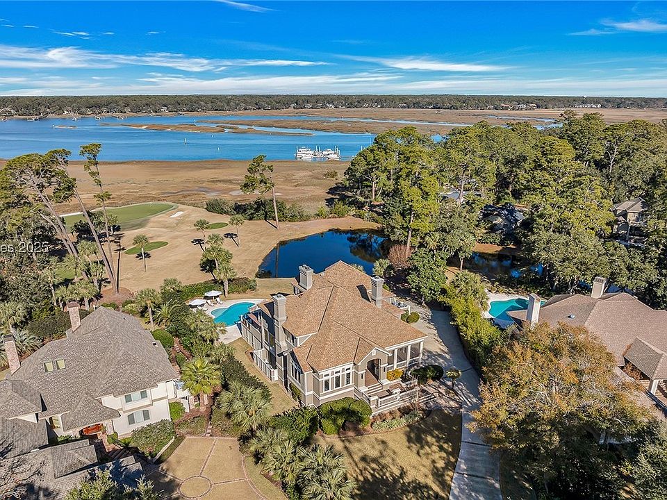 Welcome to 8 Gracefield, an exceptional home along the Broad Creek in the coveted Long Cove community. This luxurious retreat offers an open floor plan flooded with natural light, high-end finishes, and a gourmet kitchen with top-tier appliances. The inviting living spaces seamlessly flow, showcasing stunning golf-to-deep-water views in nearly every room. Outside, enjoy a private oasis with a pool, outdoor kitchen, and spacious patio. Just minutes from beaches, dining, shopping, and golf, this home offers the perfect blend of luxury, comfort, and coastal serenity.