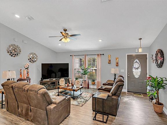 HURRY and schedule your showing before this one goes PENDING! This 2021 newly built home has 3 bedrooms and 2 bath with a split floor plan layout! This home is located in the beautiful City of DeBary. It is centrally located near I-4, grocery stores, shopping, and restaurants. It features vaulted ceilings, eye catching shaker cabinets with granite countertops, kitchen island, and stainless steel appliances. Your owner's suite offers a dual-sink vanity and walk-in closet. Additional perks to this home include a powered attic fan to keep your house cool in the summer, radiant roof barrier, and more. Endless outdoor events and new memories right here in your fully fenced in spacious backyard. Builder's home warranty is transferable to the next homeowner. Why wait for a new build to be completed, when you have this opportunity to own this move in ready dream home!!! Don't wait too long, schedule your showing today!
