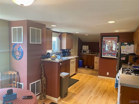 Three bedroom & 1 1/2 bath home with a spacious and private yard. The home has had MANY updates, including a propane furnace, hot water heater, windows, Electrical (new panel and wiring), bathrooms and more. This charming home has an open floor plan on the first floor with hardwood floors throughout, as well as a half bath with laundry and a first floor bedroom. Second floor has a full bath and two bedrooms including the master with a walk-in closet. Added storage and space with a large mudroom/ workshop area off the back of the house. The full basement has a wood stove for a supplemental heat source which warms the entire house. This home is located on a side street in the Village of Earlville, just a short drive to both Hamilton & Sherburne.