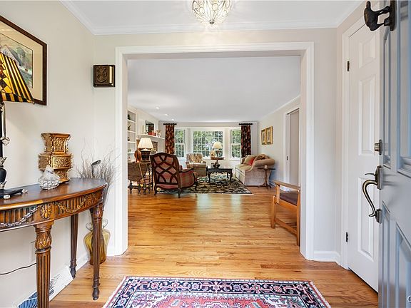 molding, custom built-ins and plenty of natural light. The living room flows into