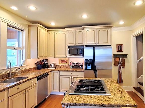 A special home where memories are made - strolls to the beach in search of shells and rocks, shady afternoons on the patio with a book, walks to downtown for ice cream and after the end of a great day, shower in the outdoor shower. Quintessential Colonial Circa 1900 is perfectly situated in the coveted Olmsted Historic District. This property has been well-maintained with many recent high-quality updates and renovations. This gracious 5 bedroom, 2.5 bath home exudes period warmth throughout. Enjoy the charm of built-ins and moldings, good morning stairs, gas fireplace, generous foyer and a sun room. The kitchen has granite counters, island seating and plenty of cabinet storage. A bonus in the home is the third floor loft featuring the 5th bedroom, a full bath and sitting room. The grounds have been lovingly planted with perennials and specimen plants. Dry cellar with professionally installed drainage system. Located close to commuter rail, library, town hall.