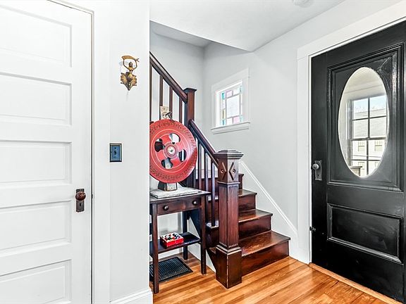 Discover the charm of this delightful antique home, featuring high ceilings, hardwood floors, and period details throughout. The first floor includes an enclosed front porch, a living room with custom built-ins, an elegant dining room, and an updated kitchen. On the second floor, you'll find three bedrooms and a renovated hall bathroom. The third floor offers high ceilings and flexible space for various uses. Enjoy the private yard, stone patio and perennial gardens with a detached shed, perfect for an office, man-cave, or she-shed. Located on a quiet street in a lovely neighborhood, this home is just minutes from the Fiske School and offers easy access to all major routes.