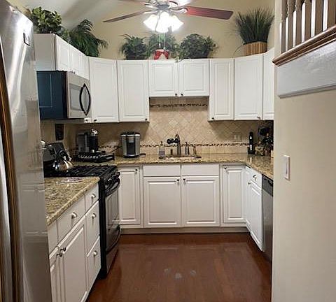 - Appliances: Dishwasher, Refrigerator, Gas Cooktop, Dryer, Microwave, Washer, Stove