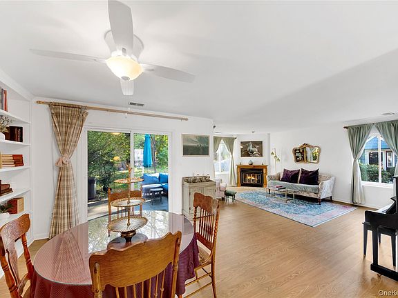 Welcome to Hendrick Hills — a bright and spacious end-unit condo/townhouse offering comfort, style, and convenience. Located in the heart of Peekskill within the Hendrick Hudson School District. This move-in-ready home features two bedrooms, two-and-a-half baths, and a beautifully open layout that seamlessly connects the dining and living areas, centered around a wood-burning fireplace. The updated eat-in kitchen includes elegant stone countertops and backsplash, modern cabinetry, and in-unit laundry. The primary suite impresses with two large walk-in closets, primary bathroom with skylight, and a versatile bonus room — perfect for a home office, nursery, or reading nook. Enjoy the private stone patio overlooking a wooded area, ideal for quiet mornings or outdoor entertaining. Recent updates include a new HVAC system and a 40-gallon gas water heater. Pet-friendly complex with low HOA fees for grounds maintenance. Conveniently located near the Peekskill Metro-North Station (1.5 miles), Route 9A, shops, parks, and restaurants — an exceptional value in a sought-after location! Taxes do not reflect Basic STAR exemption of $1,584.