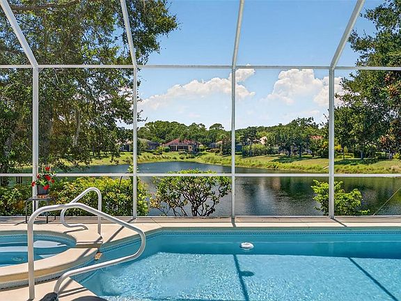 Welcome to 8 Hidden Lake Way – where luxury meets comfort in this stunning ICI-built residence! Prepare to be impressed the moment you step through the double doors into a home that exudes elegance and thoughtful design. Features include, high ceilings, crown molding, and panoramic views of the tranquil lake and sparkling pool with spa set the tone for a lifestyle of relaxed sophistication. This spacious split floor plan offers both privacy and functionality, with engineered hardwood flooring in all bedrooms adding warmth and style. The heart of the home features an open-concept living space with a gas fireplace, and a chef’s kitchen with cherry wood cabinets, granite countertops, a gas range and stove, and a sunny eat-in nook overlooking the water. A formal dining area provides the perfect setting for holiday meals or intimate dinners, while the inside laundry room adds everyday convenience. Step outside to your private oasis—enjoy morning coffee or evening sunsets from the covered lanai, or unwind in the pool and spa with serene lake views as your backdrop. This home truly checks every box with luxury finishes, a thoughtful layout, and a setting that feels like a retreat. Additional highlights include an irrigation well with sprinklers, ensuring lush landscaping year-round. Lightning protection from roof to ground. Enjoy easy access to the Intracoastal Waterway walkway trail, which offers miles of walking, biking or fishing adventures and proximity to the Village Center cafe and amenities (gym pool, tennis, pickleball, bocce, exercise classes) and Jack Nicklaus signature golf course. 24-hour gated entrance to Grand Haven. 5 min driving distance to the beach!