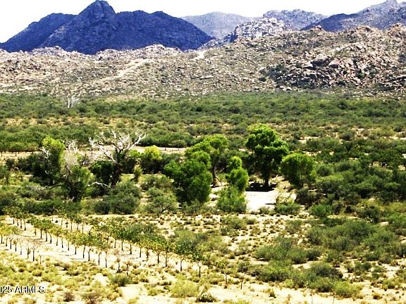 Stunning 424.28 +/- acres of pristine land (Parcels 202-15-009B & 202-15-012K) NO HOA, NO CC&R'S, 5 domestic & irrigation wells, APS primed for hookup; 70 acres of Pistachio Trees planted in mid-80's. Land is known for its shallow groundwater. Opportunity/asset for a developer, family estate, private farm, horse, or gentleman's ranch. Land was part of Hawkins Ranch once farmed in the 1940's to 1970's. Finding land with irrigation wells is valuable & difficult to find this close to Wickenburg. Approx 15 miles northwest of Wickenburg city limits. Zoned one home per two acres. Property outside AMA & adjudication area. Communities along HWY 89 such as Wickenburg Ranch on the way to property. Enjoy cooler temps at 3300' elevation & panoramic views of Weaver Mountains. Buyer to verify info.