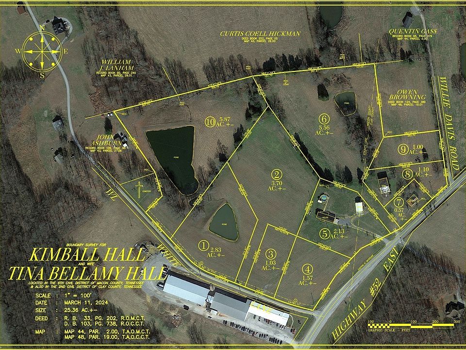 At Auction - Saturday, June 8th at 10:00 A.M. - Real Estate: Consist of a super choice 25.36 acres surveyed, platted, and staked to be sold in 10 gorgeous tracts. Tracts range in size from 1.00 acre to 5.87 acres! Tract #5 is improved with a spacious 3 bedroom 2 bath brick home! This home offers over 2,000 sq.ft. of living space, open floor plan great for entertaining, built-in appliances, possible 4th bedroom or office room, one car attached garage, detached garage/shop building, pool, & so much more! Absolutely stunning tracts that offer beautiful building sites, city water accessible, soils tested & approved for septic systems! Other property features include 3 large ponds that are stocked, beautiful rolling pastures, a barn, and some of the most gorgeous views around! If you have been in the market looking for land to build that new home on then you better check this one out!
