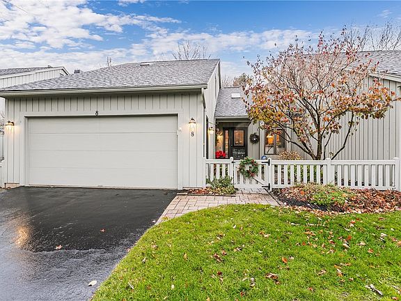 Beautiful and bright spacious unit in Allens Creek Valley! Front gated courtyard garden welcomes you. Dramatic two-story foyer opening to Great Room with woodburning fireplace, cathedral ceilings and skylights. Sliding glass doors lead to huge sunroom ( additional 260 Sq ft not inclcuded in 1866 sq ft listed by the town) with windows all around and skylights above provide a great entertaining space (one of the few units that has this sunroom addition). Eat-in Kitchen with newer stainless steel Kitchenaid refridgerator, GE Profile Range, garbage disposal and dishwasher all replaced two years ago. Newer quartz countertops, sinks and faucets in kitchen, masterbath and upstairs bath. New bay window in kitchen. Private Master suite on the first level and half bath and laundry room. Loft area/den and second bedroom and bath on the second level. Full basement and two-car garage. Enjoy the tennis and pickleball courts Allens Creek Valley has to offer! The central location is convenient for shopping, schools, downtown Rochester and Route 490.