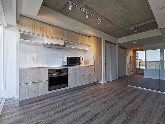 The homes range in size from around 300 square feet to almost 2000 square feet.The suites reflect the building's style and mandate for comfort, thanks to their 8-10 foot ceilings, floor-to-ceiling windows, and glass railing balconies. Open concept, european style kitchens should please any host looking to entertain, designed with large islands, integrated modern appliances, and sleek ceramic backsplashes.Floors are finished with engineered hardwood, and luxurious bathrooms feature marble details, soaker tubs, white stone sinks, and glass door showers.Community Amenities- Video surveillance- Elevators- Outdoor pool- Social room- Fitness room- Convenience store- Storage lockers- Exercise room- Hot tub- Security onsite- Recreation room- Public transit- Shopping nearby- Parks nearby- Schools nearby- No Smoking allowed- Rooftop BBQ Area- 24/7 concierge service- Balcony- Security CamerasSuite Amenities- Air conditioner- Fridge- Stove- Washer in suite- Dishwasher available- Balconies- Individual thermostats- City views- Dryer in suite- Cable ready- Microwave- Central air conditioning- Window coverings- Internet ready- Vinyl Plank Floors