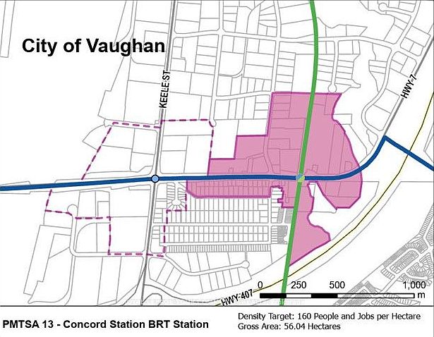 Rare opportunity to secure future development land within a Protected Major Transit Station Area (MTSA), steps from the planned Concord GO Station. Situated near Vaughans emerging downtown core, TTC Subway, and just a short walk to York University, this property offers exceptional connectivity and access to top amenities.The sites wide frontage and location within the protected MTSA framework present strong redevelopment potential, including the possibility of lot division to semi's towns, or higher-density residential forms up to potentially 5 storeys with minimum denisty of 0.9 FSI, subject to municipal approvals. A prime investment in one of Vaughans fastest-growing transit-oriented communities, the subject site is within the Primary Corridor and Strategic Growth Area for Vaughan