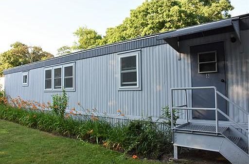 Totally renovated in past year : new flooring, new Anderson windows, new appliances, new bathroom, new ceilings, new electrical, new rubber roof, new plumbing, new skirting, new kitchen cabinets,counters and sink. Walls have been insulated. Walls have tongue and groove pine board(shiplap) ,new hot water heater, and freshly painted exterior. New stairs and trim on rear porch.Shed is perfect for a workshop and includes a drill press, grinder, and vice. Park fee is $375 monthly and water/sewer average $75 per quarter (owners responsibility). Level yard which is private and has 2 parking spaces. Easy highway access to Rtes 395, 20, Ma. Pike, 12, and 146.