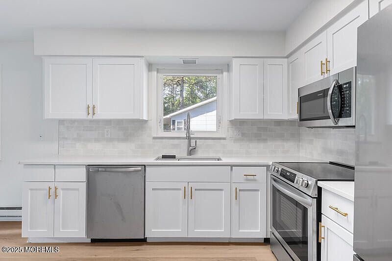 Welcome to Greenbriar I, one of Brick's most desirable adult communities! This beautifully updated home features fresh paint, new flooring, and a stunning kitchen with quartz countertops, stainless steel appliances, and new cabinetry. The bathroom has been completely modernized. Enjoy peace of mind with a new electric panel, hot water heater, and dual heat sources. Relax in your three-season room or take in lake views and sunsets from the nearby walking path. Fresh exterior paint, new awnings, and shutters complete this gem with low taxes and amazing amenities!