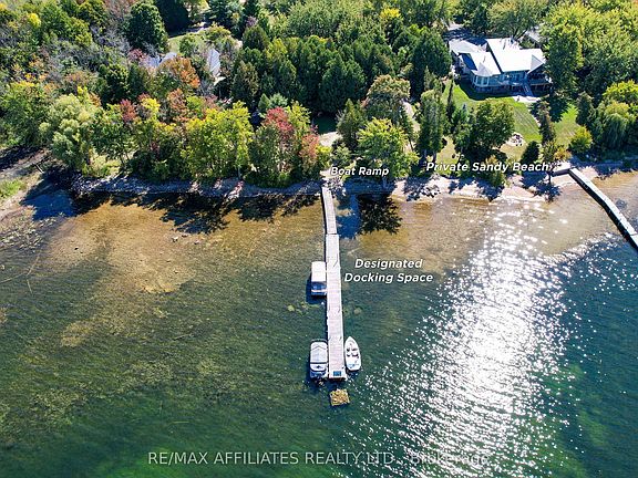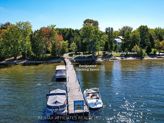 Welcome to Sheldons Landing Estates on The Big Rideau, 2.2-acre lot w/elevated waterfront views & access to private sandy beach, exclusive 20 dock space & convenient boat ramp, 3+1 bedroom bungalow w/walkout basement, circular front walkway, mature landscaping, covered double-wide veranda w/stone pillars & exterior pot lighting, double front doors, foyer w/vaulted ceilings, tile flooring & curved archways, dining room framed by Roman columns & side French glass door, living room w/cathedral ceilings, cornerstone gas fireplace, garden doors flanked by soldier windows, & hardwood flooring, open-concept centre island kitchen w/multi stool breakfast bar, granite countertops, tumbled marble backsplash, upper moldings, under-cabinet lighting & plenty of pot drawers, adjoining eating area w/panoramic views, primary suite w/cathedral ceilings, crown molding, wall of lakeside windows & 3-sided walk-in closet, 4 pc ensuite w/double vanity & large glass shower, rear hallway w/computer nook, laundry area & multiple closets, 2 pc powder room w/California shutters, 2 additional bedrooms, one overlooking the lake, share 4 piece bathroom in private wing, walkout lower level w/2 versatile recreation rooms featuring large windows, direct access to outdoors & seasonal closets, 4th bedroom w/lake views, walk-in closet & barn-style door to luxurious ensuite w/radiant tile flooring, a standalone tub & glass shower, additional finished storage space, elevated entertainment-sized lakeside rear deck, oversized two-car garage w/inside access & ramp, extra storage shed, paved road access w/high-speed internet, minutes away are Portlands medical centre, grocery stores, LCBO, restaurants, cafés, and marinas, international Rideau Lakes waterway, offering world-class boating, fishing, swimming & recreation at your doorstep, 24 Hour Irrevocable on Offers. $250 per year - Beach Front insurance, and maintenance
