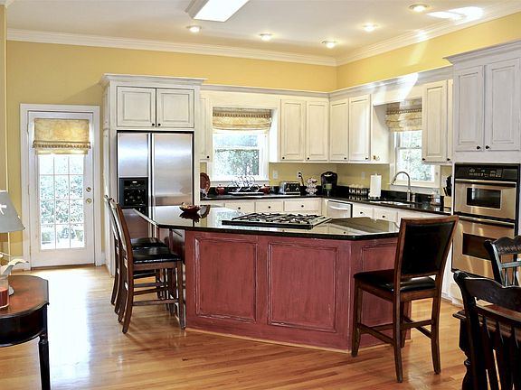 - Kitchen: Bar, Counter Tops-Granite, Eat In, Pantry, Island, Bay Window, Floors-Hardwood, Cabinets-Painted, Recessed Lights