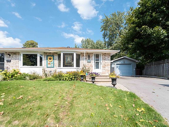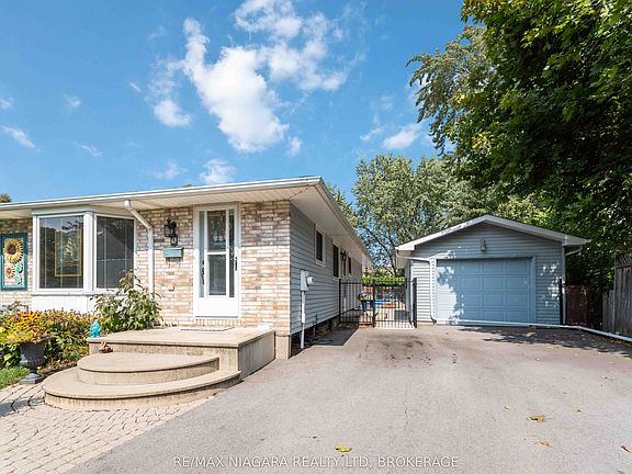 Charming Semi-Detached Bungalow with Detached Garage & Backyard Oasis Welcome to this well-maintained 3-bedroom, 1.5-bath bungalow, ideally located in a sought-after, family-friendly neighbourhood close to schools, parks, trails, and vibrant Port Dalhousie. Step inside to find a warm and inviting main floor featuring a spacious living room with a large bay window and hardwood floors. The cozy dining area flows seamlessly into a functional galley-style kitchen, complete with ample cabinetry and a centre island, perfect for everyday living and entertaining. A convenient side entrance adds flexibility, ideal for families or those considering an in-law suite or rental opportunity. The fully finished lower level expands your living space with high ceilings, a generous rec room with a gas fireplace, a dedicated workshop/laundry area, and abundant storage, perfect for hobbies, or entertaining. Outside, escape to your private backyard retreat. Situated on an oversized, deep lot, the fully fenced yard features a sparkling inground pool, lush landscaping, and a pergola-covered patio plus additional green space for added privacy. A detached garage and double-wide concrete driveway offer plenty of parking and everyday convenience. Move-in ready, this charming home blends comfort, functionality, and outdoor enjoyment making it an ideal choice for families, downsizers, or anyone seeking a backyard oasis in a premium location.
