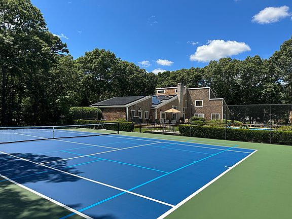 The Smartest house in Quogue! Heated Pool & brand new Pickle Ball court- August Goals Immerse yourself in this Immaculately done five bedroom, four bath home with sleek, chic finishes and a casually elegant vibe. The first floor open plan entry greets you with lush garden and pool vistas, sweeping ceiling heights, encompassing an expansive living space with just-renovated kitchen, open dining and comfy living room seating. The main floor offers a primary bedroom with en-suite amenities, abundant closet space, an additional bedroom, den with sleeper sofa, large mudroom, and multiple ways to access the great outdoors. On the upper level, two more beds, one serves as a home office, with pullout sleeping accommodations, and ultra high-speed internet access, and the fourth bath. Super smart features include large flat screens throughout, remotely programmed entry, temperature and sound system controls, and a Tesla car charger. Newly finished lower level offers a fully equipped gym with boxing equipment and a newly installed den with huge flatscreen. Lush gardens offer privacy and the serenity of a lovely country home. The rooftop solar energy panels promise low electric bills. Quogue Beach rights, Be the first to invite your guests for a pickle ball game chez toi