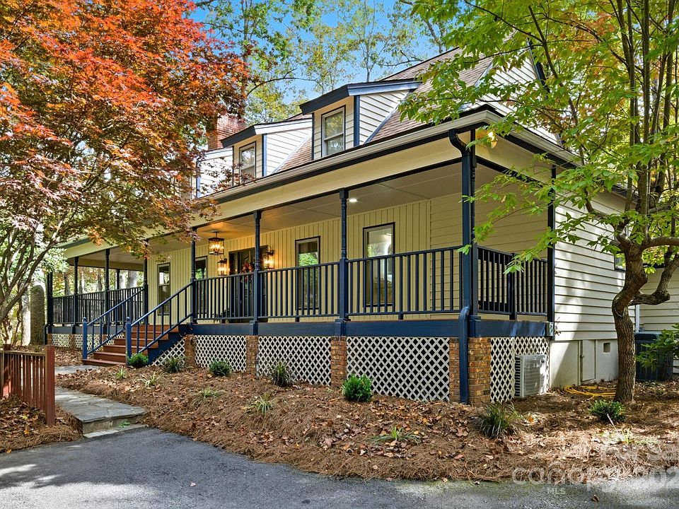 Welcome to 8 Indian Ridge Road! This spacious home, featuring 3 bedrooms and 2.5 baths in the main home, also has a finished space over garage that has an additional full bathroom. Situated on a generous 1.26 acre lot on a quaint wooded cul-de-sac, this home has lots of natural shade and nature-provided privacy from the old growth trees surrounding. Having been completely updated with a full remodel, you'll appreciate all the fine details. This Cape Cod style home has an inviting wrap around covered porch covered with narrow plank wood, offering a great place to relax in rocking chairs and enjoy the Fall breeze. Follow the porch around to the back and enter the glass enclosed Carolina room, offering a respite to enjoy the outdoors even when cooler outside. As you enter the front door, you'll appreciate the new waterproof laminate wood flooring throughout the main level. The large living room features a centerpiece brick fireplace with Buckstove wood burning insert to keep cozy on the colder nights. The fully remodeled and modernized kitchen is open to a nice dining area and there is a half bath on main for guests. Don't overlook the built-in coffee bar nook also! The Primary Bedroom is also on the main level and features an en-suite full bath with dual vanities and custom tiled walk-in shower. Upstairs you will find two additional bedrooms, each having a total of three closets, including a nice walk-in. Laundry closet is also located upstairs. Out the backdoor, you'll find the breezeway to the utility room and detached two-car garage. Stairs will lead you up to the finished space over garage which has a nice carpeted room and full bathroom with shower. There is a utility shed and a shop building with power and foam board insulation - possibilities are endless for what you do with this extra space! You'll appreciate the fenced back yard where the outdoor firepit area is - a great place to entertain friends or just relax! If you're worried about losing power in inclement weather, don't - this home has a Generac whole home generator included. If you are looking for living in the heart of Western NC with privacy and also a neighborhood feel, then this home has it all. Truly move-in ready! Take the virtual tour here: https://my.matterport.com/show/?m=FCLQgB346oE& and see the property video here: https://listings.wncrealestatephotography.com/videos/0199e881-a69f-721f-8cbe-8e8d1e262800