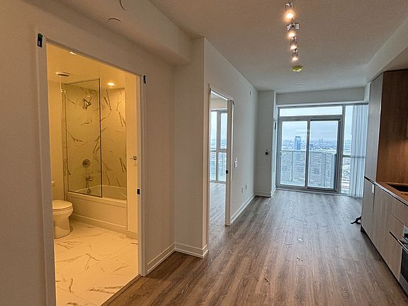 Brand New & Luxury Menkes Built, East Tower extra Bright & Spacious 1 bedroom+Den 1 Bath. Den is spacious with door (like a bedroom), large balcony, This unit features a bright and functional open-concept layout with floor-to-ceiling windows, high end finishes, stone countertops, and integrated appliances. Conveniently located just steps from the VMC subway station and regional transit, with quick access to Hwy 400 & 407, Go Train, TTC Line 1Subway, York University, Cineplex, IKEA, Costco, many restaurants, and everyday essentials. With Popular Attractions like Canada's Wonderland And Vaughan Mills. Perfect for professionals, students, or anyone seeking style, convenience, and connectivity in one of Vaughan's most exciting communities. A Vibrant, New Downtown Surrounded By Modern Office Towers, Immersive Retail Shopping and Expansive Green Spaces.