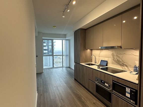 Brand New & Luxury Menkes High Built, 1 bedroom+Den with 2 Bathroom. Master Bedroom with Ensuite 4-piece bathroom. Den convertible to a home office or 2nd bedroom. Interior 583sqft and with large balcony. This unit features a bright and functional open-concept layout with floor-to-ceiling windows, high end finishes, stone countertops, and integrated appliances. Conveniently located just steps from the VMC subway station and quick access to Hwy 400 & 407, Go Train, TTC Subway, York University, Cineplex, IKEA, Costco, many restaurants, and easy to reach to Canada's Wonderland And Vaughan Mills. Perfect for professionals, students, or anyone seeking style, convenience, and connectivity in one of Vaughan's most exciting communities. A Vibrant, New Downtown Surrounded By Modern Office Towers, Immersive Retail Shopping and Expansive Green Spaces.