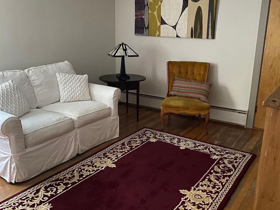 This is a 1 bedroom apartment on second floor in a beautiful country home with hardwood floors. Private bathroom, living room - kitchen space freshly painted and new windows with adjacent bedroom with new carpet. Large closet space. Front door entrance would be shared. Heat, hot water, electric, internet, sewage disposal and snow removal are all included in rent. Efficiency kitchen contains microwave, Induction cook top and refrigerator. Other Small appliances are allowed. The space is unfurnished. This property is owner occupied and owner will require background and credit check. No pets, No smoking allowed. Must have solid employment history. Owner pays for Heat, hot water, electric, internet, sewer and snow removal No pets or smoking allowed