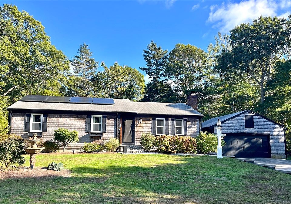 Pride of ownership is evident in this beautifully maintained 3 bed, 2 bath ranch. The front room, currently being enjoyed as a stylish dining space, features a wood burning fireplace and hardwood floors that continue throughout. Next is the new kitchen, carefully crafted for style and function creating a space you won't want to leave. But just beyond beckons the new addition for lounging and living. Completely open to the kitchen showcasing a gas fireplace, ship lap walls and ceiling, floors with insulated luxury vinyl, and an overabundance of windows. New HVAC ensures comfort throughout. There are 3 generous bedrooms , the primary has it's own bath with shower and the stylishly renovated hall bath features double sinks and a 5' glass and tile shower. Find the Washer and Dryer in a hall closet with a second pair downstairs. Lower level features 2 bonus rooms. Situated on a quiet dead end street with fenced yard, outdoor shower, patio, shed, irrigation, owned solar, beaches