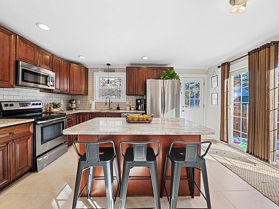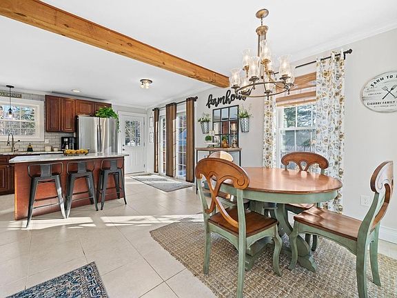 Radiant and Captivating Home with Rec Room! Idyllically nestled lot in highly desirable Merrimack, this 3BR/2BA, 1,856sqft residence delightfully emanates a classic northeastern vibe with charming Cape Cod architecture, neatly manicured landscaping, and a vibrant ruby red front door. Drenched in natural sunlight, the refreshed interior welcomes with beautiful hardwood floors, a neutral color scheme, an openly flowing traditional floorplan, and a large living room with thick crown moudling. Fashioned for easy meal prep and confident entertaining, the open concept kitchen features stainless-steel appliances, granite countertops, ample wood cabinetry, a tile backsplash, a center island with breakfast bar, an electric range/oven, a built-in microwave, a French door refrigerator, and an adjoining dining room with a stunning wood ceiling beam and quick outdoor access. Host summertime barbeques in the fully fenced backyard, which has a patio, firepit/chiminea area, a sprawling greenspace, a play area, and tons of room for grilling and chilling! Three bedrooms are generously sized with dedicated closets and provide ample comfort on chilly winter days. Owner is responsible for all utilities and Smoking is allowed outside the house