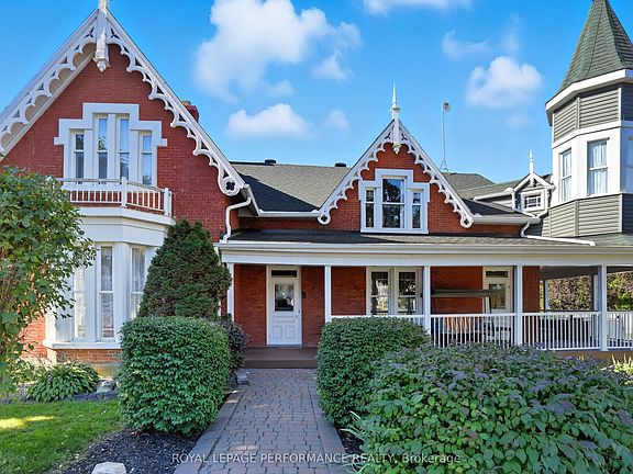 Nestled in the heart of L'Orignal, the historic Proulx House (built in 1885) is a striking example Victorian architecture, blending timeless character with thoughtful modern updates. From its stone foundation and brick exterior to its intricate millwork and soaring ceilings, this residence tells a story of heritage while offering the comfort and functionality families expect today. Inside, the home unfolds with hardwood floors and elegant living spaces. A front sitting room is anchored by a marble-accented wood-burning fireplace, while the formal dining room is designed for gathering and entertaining. The renovated kitchen is a chefs dream, complete with granite counters, stainless steel appliances and a spacious walk-in pantry. For convenience, the main level also includes two private offices, a powder room and a three-piece bathroom. Upstairs, four generous bedrooms provide space for family and guests, complemented by a luxurious five-piece bathroom and additional family sitting areas. A private balcony extends from the fourth bedroom, perfect for enjoying quiet mornings or evening breezes. With approximately 3,849 Sq ft of living space, the layout offers flexibility for hobbies, home offices or entertaining on any scale.The fully fenced lot is beautifully landscaped, featuring a saltwater inground pool ideal for summer enjoyment. A detached single garage and oversized double garage/workshop to provide extensive parking and storage, with space for up to 13 vehicles. Municipal water and sewer, forced-air gas heating and central air add to the convenience of this exceptional property. A amazing residence with rare character and abundant space, this home offers a truly unique opportunity to own a piece of local history enhanced for modern living. 1 car garage: 6.3m x 5.8, 2m car garage: 9.4m x 8.8m, with 2 additional storage rooms: 6.8m x 6m and 7.1m x 2.5m