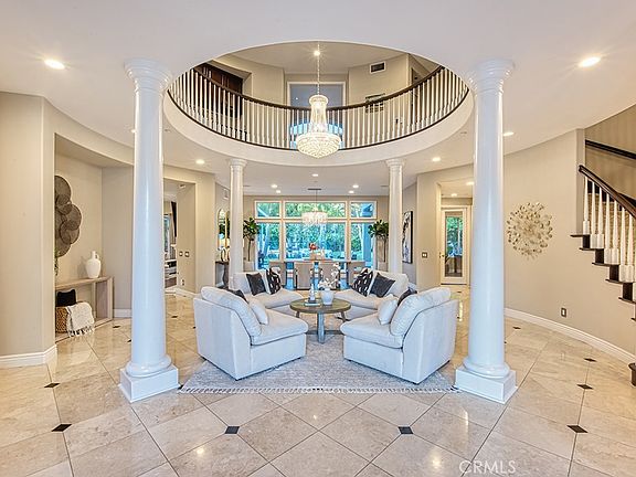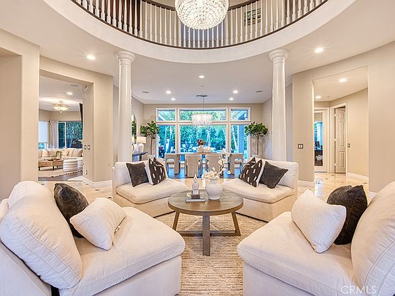 Welcome to 8 Joliet, a completely renovated and elegant home located just inside the North gate of Coto de Caza, offering convenient access to nearby shopping centers, restaurants, and schools. As you enter, you're welcomed by a circular foyer with soaring ceilings and a formal dining room. The chef’s kitchen features top-of-the-line stainless steel appliances, including a Sub-Zero refrigerator, built-in Wolf coffee system, granite countertops, and a walk-in pantry. The adjacent family room provides a spacious and comfortable area with a fireplace. On the main floor, you’ll also find a guest suite and an additional bedroom, ideal for in-laws or guests. The expansive backyard offers a private outdoor space with a large pool and spa, complete with an in-ground safety fence for children and pets. There are two hardscaped areas for outdoor seating, a generous lawn perfect for dogs, and a gazebo offering shade for warm summer days. Upstairs, the large primary suite includes a dropdown TV, a retreat with a fireplace, an oversized balcony, and a luxurious bathroom with dual sinks, vanity seating, jacuzzi tub, walk-in glass shower, and a massive custom-built closet. The second floor also features two secondary bedrooms connected by a Jack-and-Jill bathroom, another bedroom with its own en-suite, and a spacious bonus room. Additional upgrades include marble, wood, and carpet flooring, recessed lighting with dimmers and automatic controls, plantation shutters throughout, Sonos in-ceiling surround sound, and a full security system.